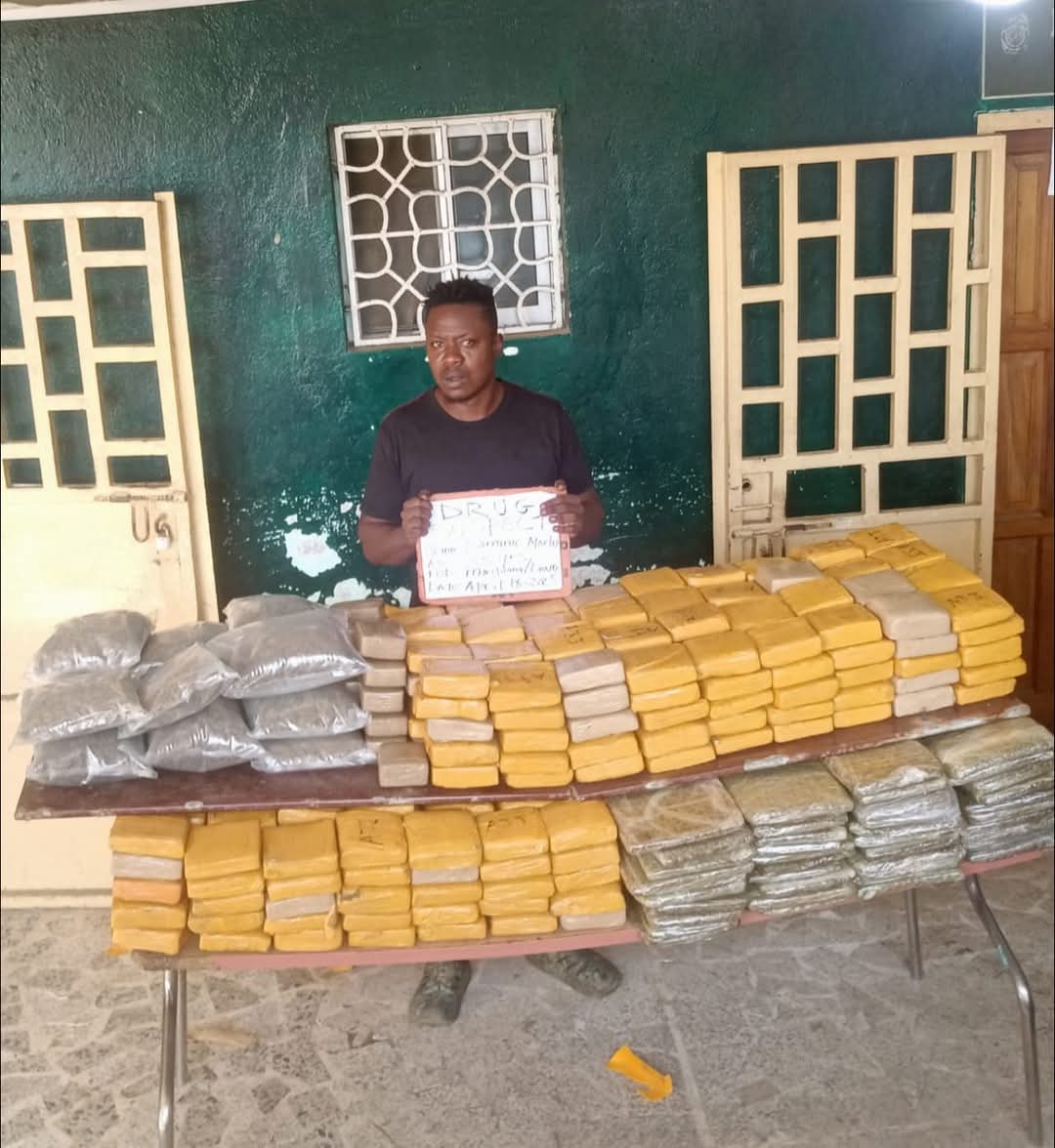 The suspect, Dominic Morlue, a 35-year-old Liberian and resident of the Bassa Town Community in Paynesville, was arrested at the scene. With his consent, a thorough search was conducted at his place of operation, resulting in the discovery of 100 compressed plates of Marijuana (Lawo), 13 uncompressed Marijuana (Lawo), and 454 processed compressed Marijuana.